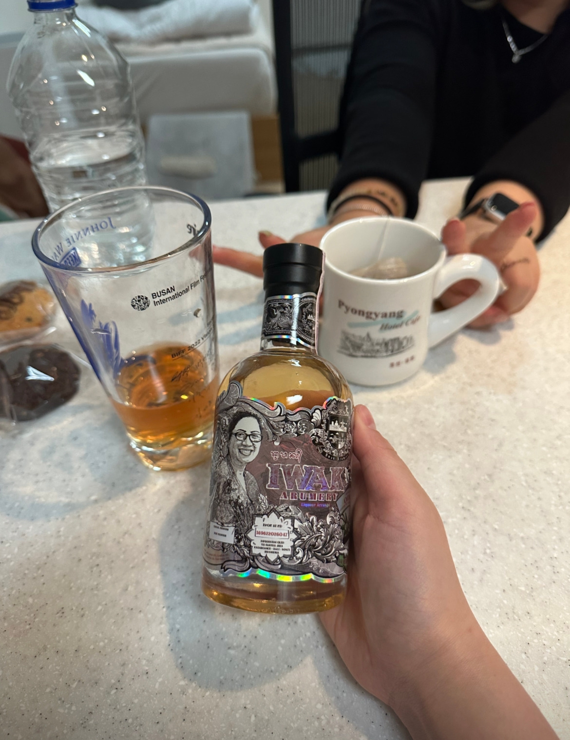 핀란드에서 사 온 편백나무 숲 향이 나는 진 (gin)이랑 도쿄에서 온 로컬 elderflower 엘더플라워 진. 베프가 발리에서 사다 준 술 (이름 까먹음), 그리고 랜덤하지만 영국 기자한테 선물 받은 오리지널 made-in-평양 머그컵 (정치학 전공 취향저격).
