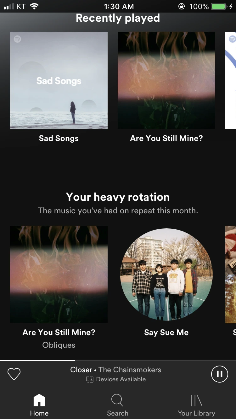 멜론을 취소하고 Spotify를 깔려고 하니 한국에서는 결제가 안되서 영국 페이팔 계정까지 만들었다. 현재 프리미엄 계정으로 열심히 쓰고 있다. 아쉬운 것은, 내가 자주 듣는 한국 인디 노래가 많이 없다. 그래도 Spotify의 추천 알고리듬을 따라갈만한 앱이 없다. 예를 들어 앱을 딱 키자마자 1) Recently played (최근 재생), 2) Your heavy rotation (요즘 자주 들은 노래), 3) More like (가수/밴드 이름) -- 자주 듣는 뮤지션과 비슷한 가수/밴드, 4) Made for you (알고리듬을 사용해서 선별된 나를 위한 노래), 5) Recommended for today (오늘 추천 음악) 등 여러 가지 메뉴가 있어서 질릴 틈이 없고 항상 새로운 음악을 찾을 수 있다.