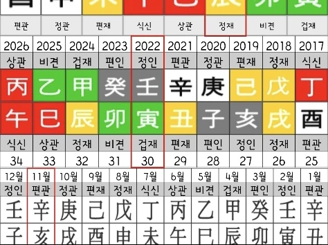 약속된 시간보다 2분 뒤, 핸드폰이 울렸고 동시에 내 사주를 나타내는 만세력 차트가 문자메시지로 왔다.