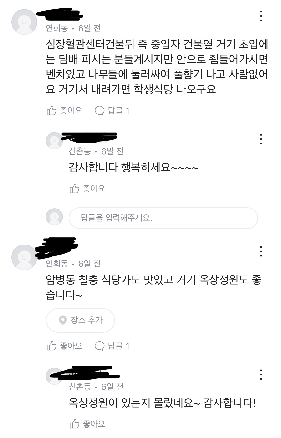 세브란스 병원에서 광합성을 할 수 있는 조용한 장소를 추천해 달라고 썼다.