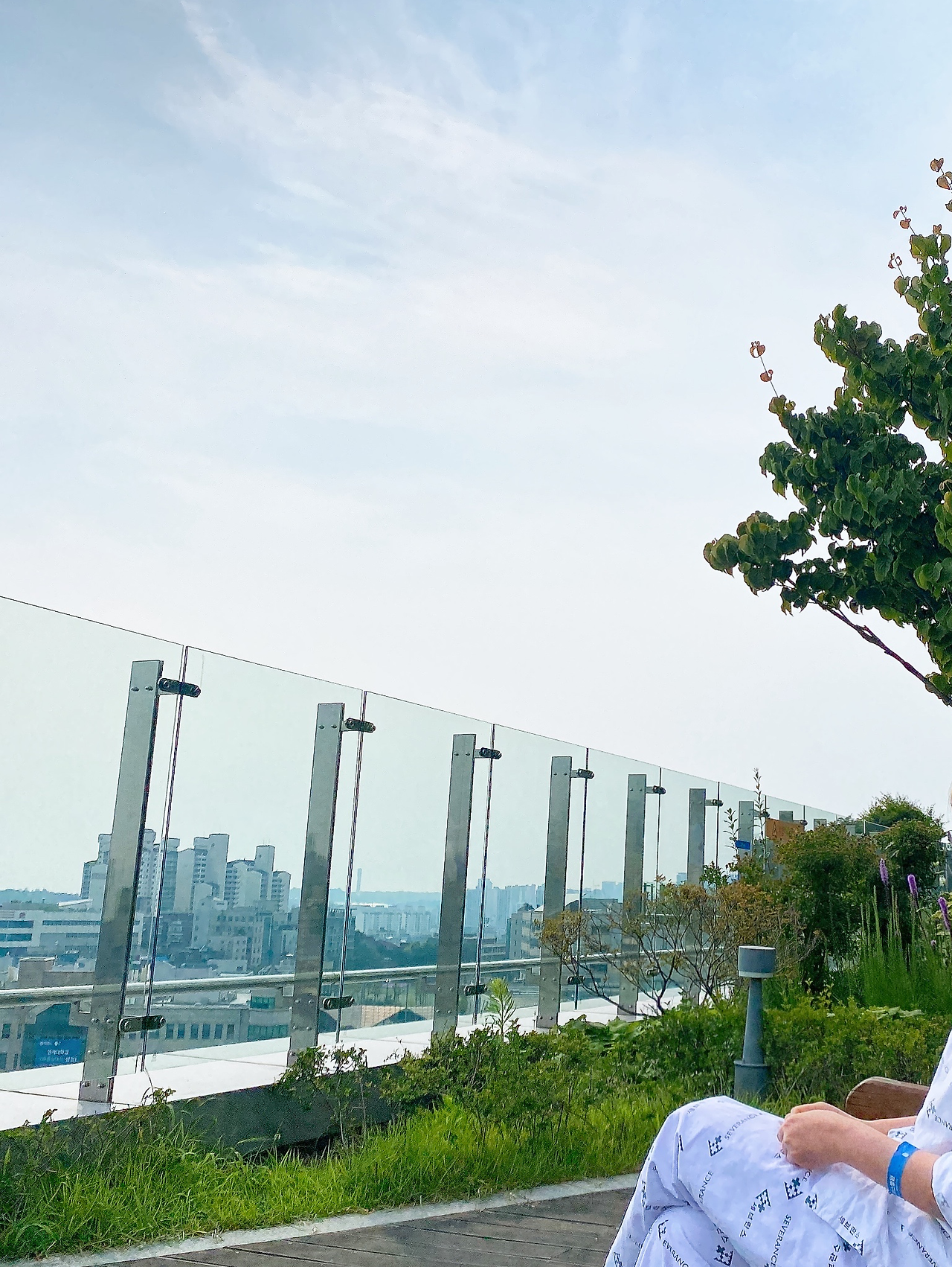 옥상정원은 암병원 7층에 있고 엘리베이터로 한 번에 올라갈 수 있다 (3층 로비에서 올라갔다).