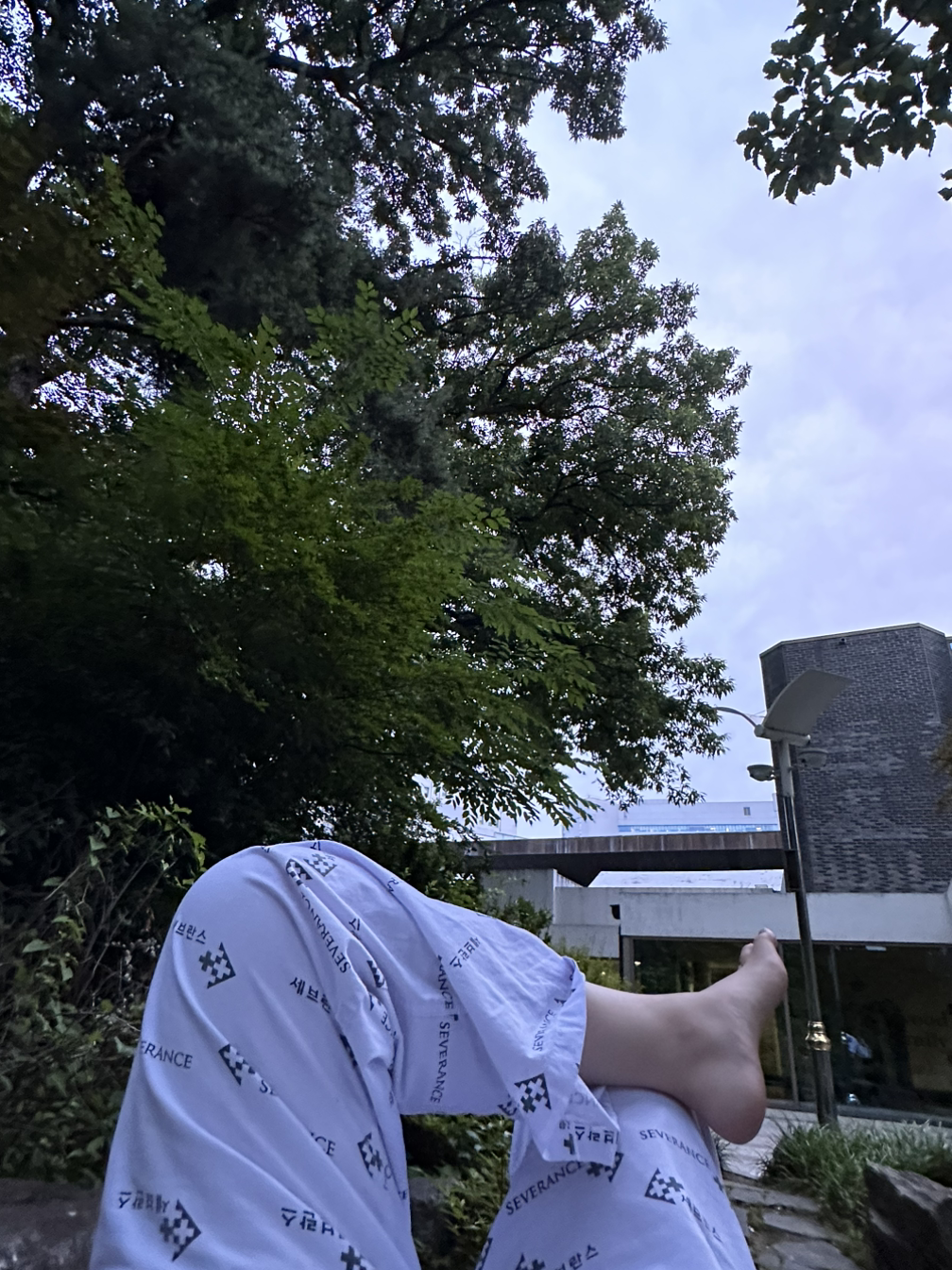 벤치에 누워서 오랜만에 고요함을 즐겼다 (병동도 조용하지만 어쩔 수 없이 생활소음이 조금씩 있다).