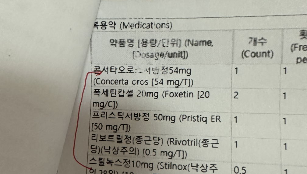 2019년에 두세 알 먹던 아침약은 ADHD 진단과 불안, 우울증 악화로 인해 종류와 복용량이 두배로 늘어났고, 수면유도제는 나중에 졸피뎀을 포함해 4-5알을 왔다 갔다 했다.