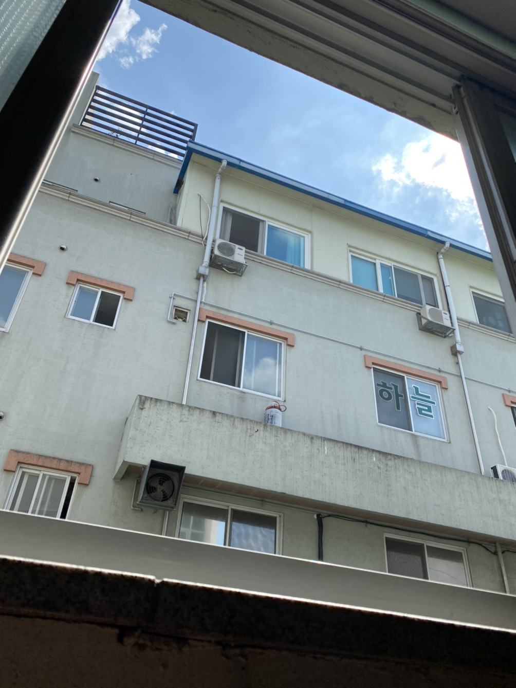 녹색의 하늘. 사실 햇살이 함부로 우리 집에 방문하지 못하는 이유는 뽁뽁이 때문이 아니다. 창문 너머 솟아있는 회색 콘크리트 건물 때문이다. 그런데 하루아침에 하늘이 보인다니. 한참을 물끄러미 바라보았다. 햇살은 쉬이 창문을 넘나들지 못하지만, 이제 녹색의 하늘을 바라볼 수 있게 되었다. 하지만 이 녹색의 하늘은 부유하는 먼지를 비춰줄 햇빛도, 오븐 구이가 될 것 같은 느낌도 나에게 주지 못한다. 물론 따스함마저도.