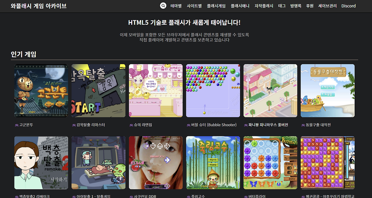 더 나아가 흥미로운 프로젝트를 접하게 되었습니다. 바로 와플래시 게임 아카이브입니다. 2020년부터 진행된 게임 와플래시 아카이브는 HTML5 웹브라우저 플래시 플레이어인 와플래시를 통해 옛 플래시 게임을 다시 개발하여 보존, 아카이브하는 프로젝트라고 합니다.