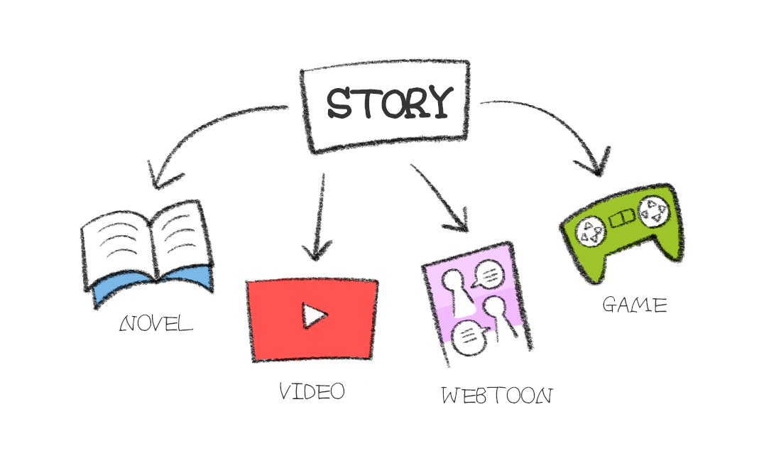 이야기는 어떤 사물이나 현상에 관하여 일정한 줄거리를 잡아 하는 말이나 글로 주로 인물, 사건, 배경으로 구성됩니다. 특정한 상황 속에서 인물이 어떻게 사건을 해결해나가는 가를 다루는 것이죠. 잘 만들어진 이야기는 요리와 같습니다. 이용자에게 전달되기 위해선 어울리는 그릇에 담겨야 합니다. 소설, 영화, 드라마부터 웹툰, 웹소설, 게임까지. 다양한 형식이라는 그릇에 담겨 이야기는 실어 날라집니다.