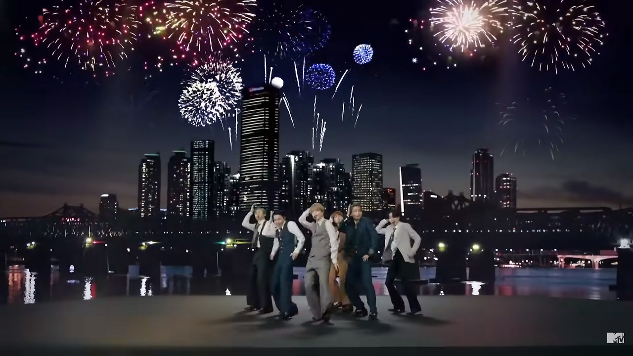 BTS는 모국의 컨텐츠를 세계 무대에 알려왔다. 그것도 아주 세련되고 영리하게. 대표적으로, 2018년 발표한 곡 <아이돌(IDOL)>에 국악 장단과 '얼쑤' '덩기덕 쿵더러러' 같은 추임새를 얹었다. 한글, 한복, 한옥에다 보름달 토끼, 호랑이, 소나무, 북청사자놀음까지 <아이돌> 뮤직비디오에서 보여주는 한국적 요소는 수도 없이 많다.