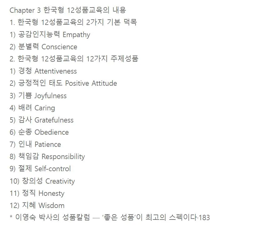 성품(인성) 덕목 분류는 정말 정말 다양하다.
