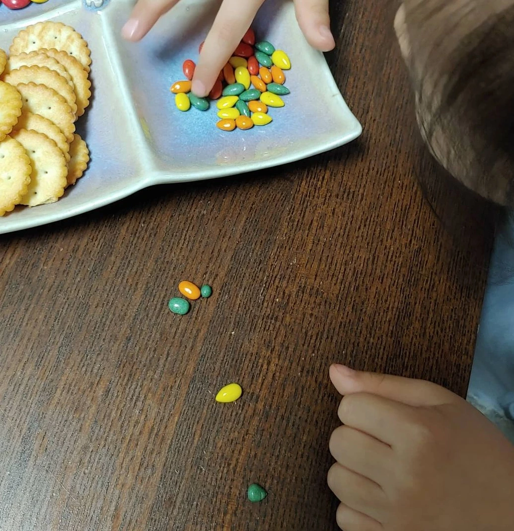 놀란 맘을 가라앉히고 가만 살펴보니 아이가 집어준 초코볼이 전체적으로 동글동글하니 일반적인 해바라기씨 모양과는 조금 다르게 생겼다.