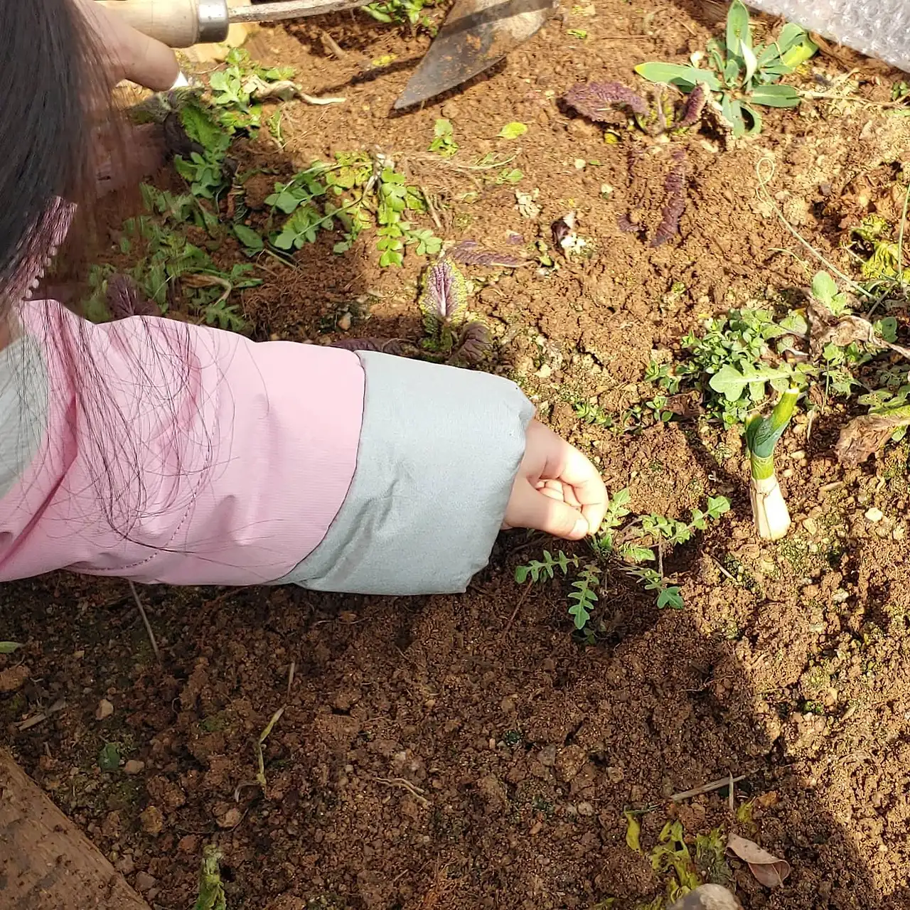 이제껏 몇 번 농장 체험을 해 봤다고 제법 이파리를 안 건드리고 호미질을 잘한다. (짜란다 짜란다~)