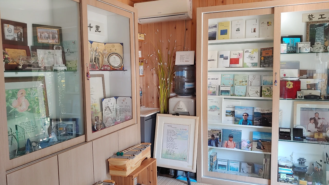 기존에 사용하던 컨테이너 하우스에는 맞춤 장을 들여서 부모님의 동요 및 가곡 창작의 역사와 교육자로서 받아오신 각종 훈장 및 임명장들을 전시한 공간을 만드셨다.
