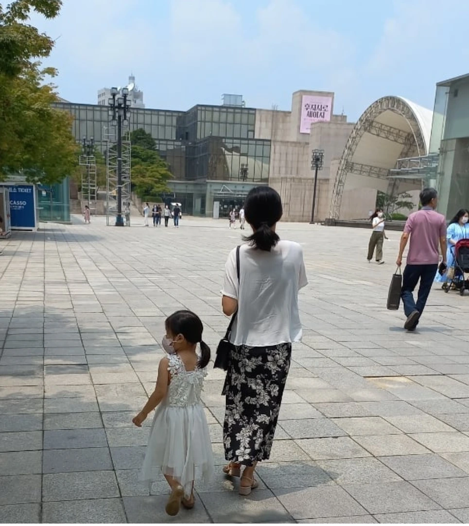평소 유치원에는 못 입고 가는 원피스를 꺼내 입히고 아이에게 미술관 관람 예절에 대해 설명을 해 준 다음, 한껏 설레는 마음으로 집을 나섰다.