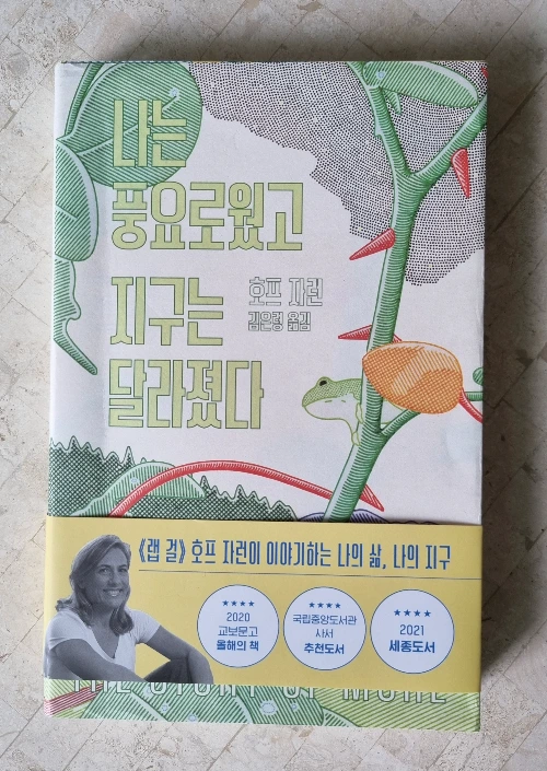 정상적인 교육을 받은 한국 사람이라면, 인간의 욕심으로 자연환경이 많이 훼손되었다는 사실을 알고 있다. 이를 멈추기 위한 대책이 필요한 점도 인지하고 있으나 우리가 일상 속에서 분리수거를 하고 대중교통을 타 보았자 전 세계적인 자연파괴 흐름에 큰 영향을 줄 수 없다는 사실도 경험적으로 안다. <환경보호>는 오랜 기간 우리 사회의 중요한 화두였다. 그러나 그 사이 변한 건 거의 없다. 과학자들의 비관적인 전망에도 불구하고 우리의 삶은 비슷하여 주제에 대한 관심이 적어졌다. 그래서 그런지 환경분야 최고의 글쟁이, '랩 걸'의 저자인 호프 자랜이 쓴 환경보호 책도 재미없었다.