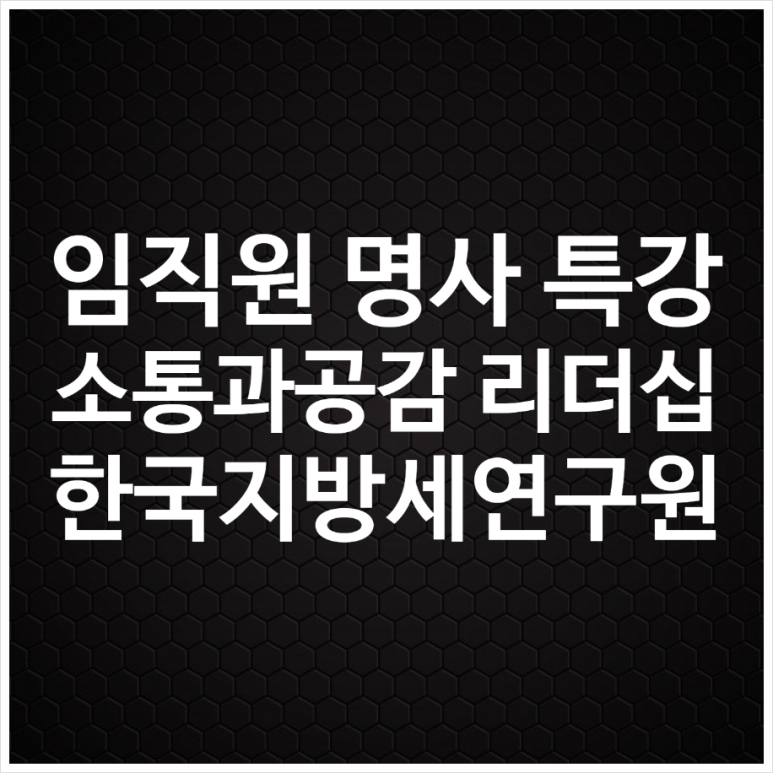 한국지방세연구원 명사 특강, 소통과 공감 리더십 강의 (강사 : 유경철) [전직원특강/소통특강/리더십특강/소통과공감특강/커뮤니케이션특강]