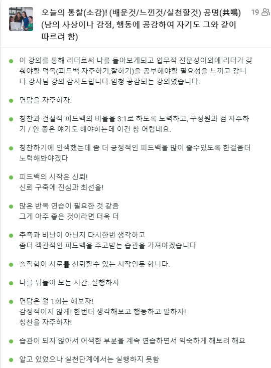 타이드스퀘어 임원과 팀장을 대상으로 진행한 2차 과정.
