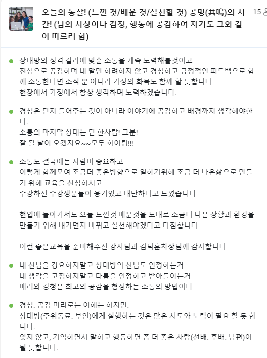 8시간 함께 하면 내가 앞으로 어떻게 소통해야 하는지를 스스로 알게 된다.