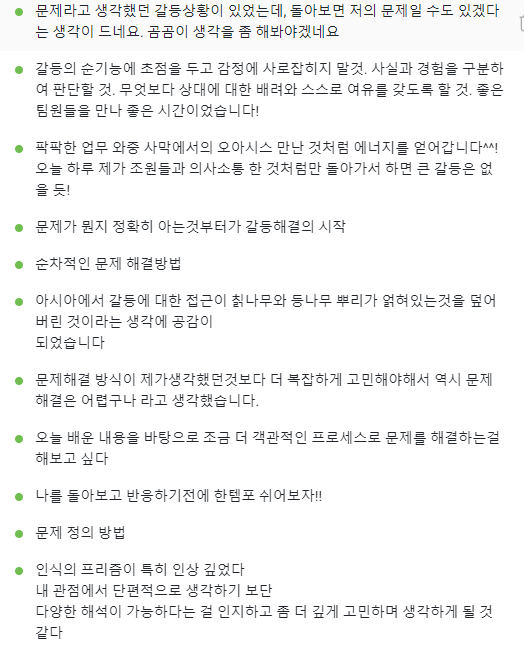 다양한 솔루션을 함께 하고 오후 4시간은 갈등속에서 드러나는 다양한 문제들을
