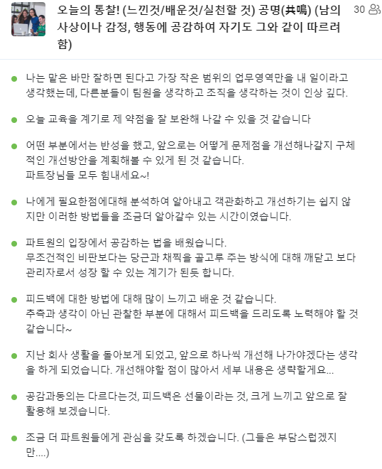 진지하게 들어주시고 토의하는 모습에 인상 깊었던 하루였다!