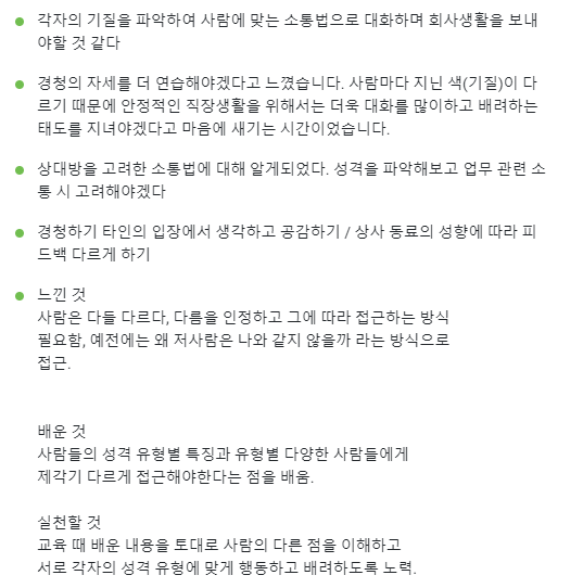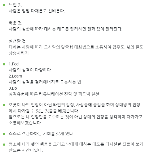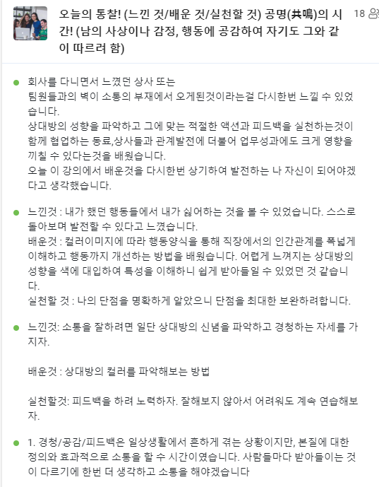 조직에서 일할 때 가장 중요한 소통이라는 주제로 다양한 실습을