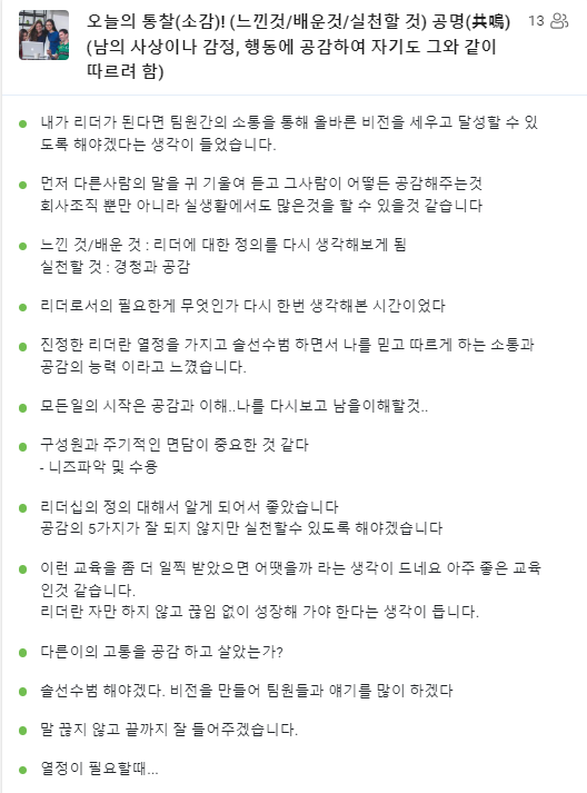 이번 특강을 통해 팀장들이 어떻게 소통을 해야 하는지...