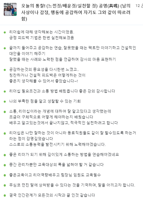 이번 과정을 통해 중간관리자로서의 마인드셋과 패러다임이 확정되는
