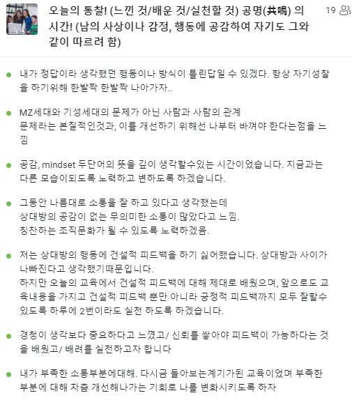 다시한번 내가 해야 할 것을 찾아보는 것이 이번 교육의 핵심 메세지다.