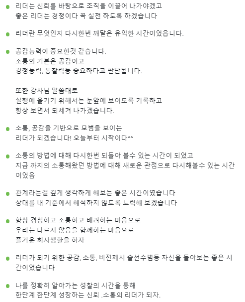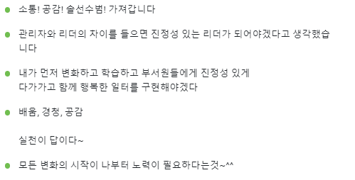 구성원과 제대로 소통하는 방법까지 진행되었다.
