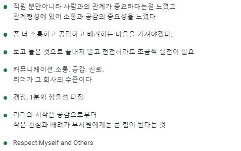 특히 대표이사, 임원들까지 함께 해 주셔서 조직의 리더란 어떤 역할을 해야 하는가?