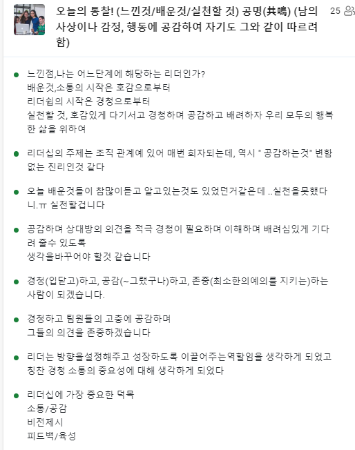 많은 리더들이 공감해 주셨다.