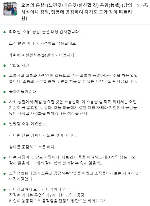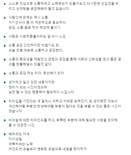 해야 하는지, 앞으로 어떻게 리더십을 발휘해야 하는지에 대해서 더욱 고민하게 되고