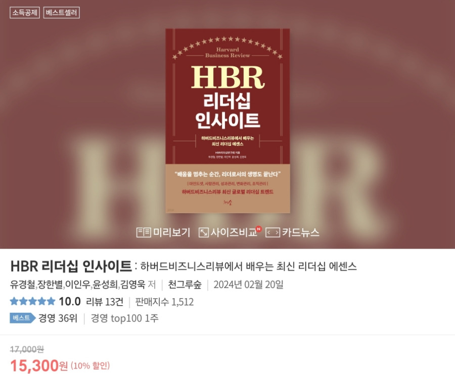 유경철 저자 신간 "HBR 리더십 인사이트" 리더십 베스트셀러 - 교보문고, 예스24, 알라딘에서 출간 1주일만에 베스트셀러 등극 - 하버드비즈니스리뷰의 인사이트