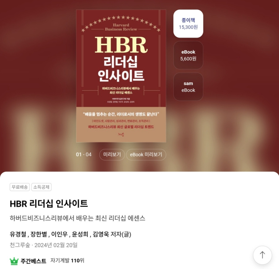 유경철 저자의 신간 HBR 리더십 인사이트가 출간 1주일만에 베스트셀러에 진입했다.