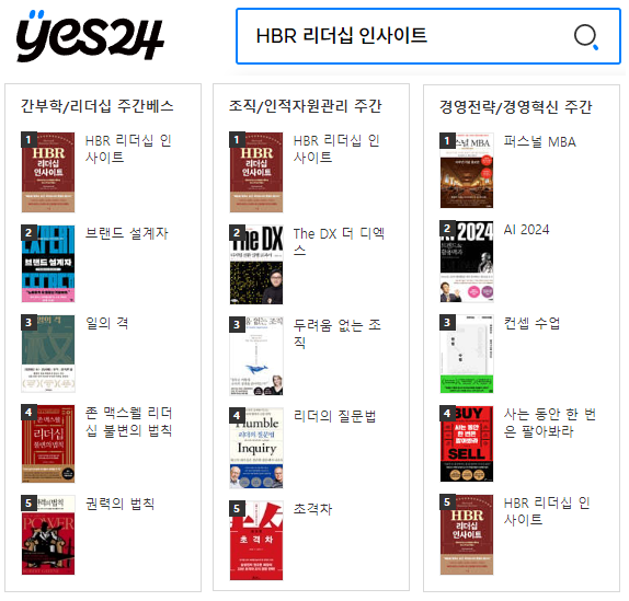 리더십 책 "HBR 리더십 인사이트" 예스24 리더십 분야 1위 베스트셀러 등극 - 유경철 저자 외 4명 [임원리더십/팀장리더십/중간관리자리더십/브릿지리더십/리더십베스트셀러]