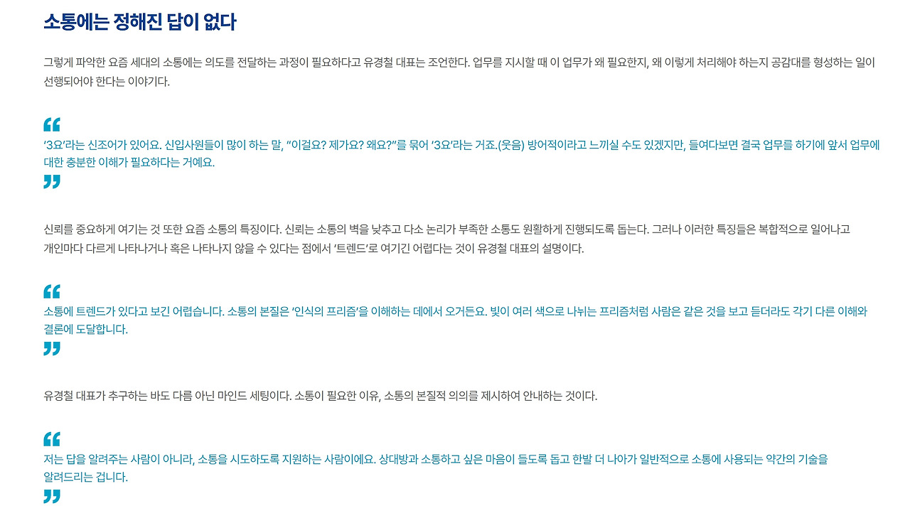 H기관 웹진 인터뷰 - 소통과 공감 대표 유경철 - 조직에서의 관계와 소통 인터뷰 - 조직에서의 효과적인 커뮤니케이션 7가지 솔루션