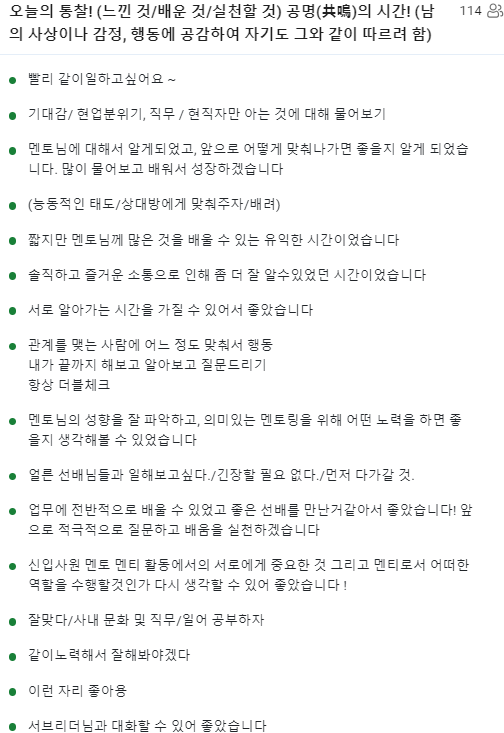 멘토링은 신입사원들에게는 너무나 중요한 시간이다.