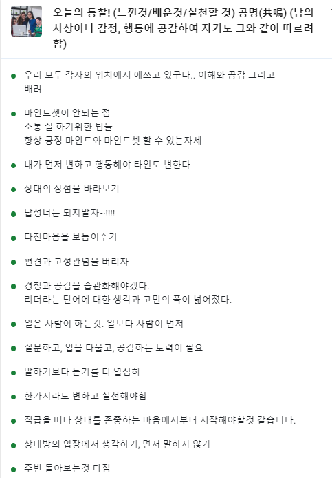 리더가 발휘해야 할 리더십에 대해서 본질적으로 학습하는 시간을 가졌다.
