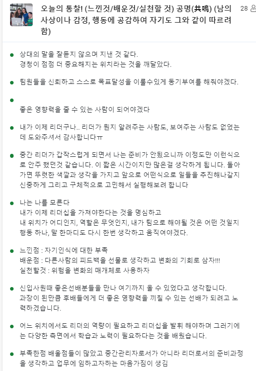 리더십 교육은 중간관리자부터 열심히 해야 한다.