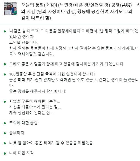 시간의 몰입을 통해 열심히 자신을 돌아본 리더들에게 감사한 시간!