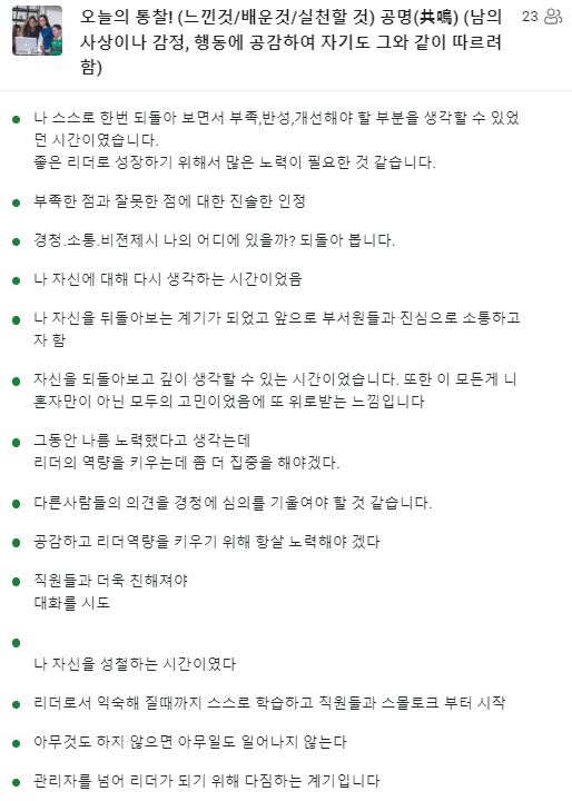 자신을 돌아보며 성찰하는 모습을 볼 때 강사로서의 만족감도 커진다!