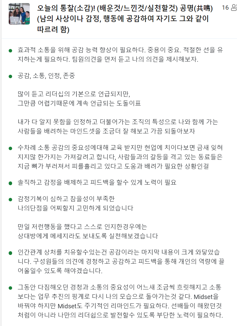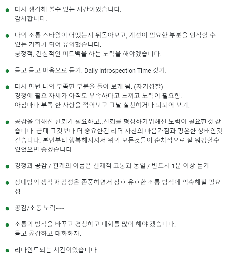 리더들의 사례를 함께 고민하면서 앞으로 소통 역량을 향상시키기 위해