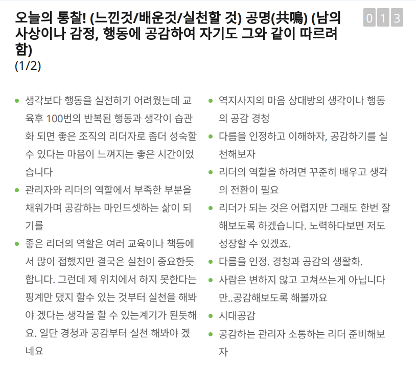 자기인식을 통해 스스로 변화하려는 모습이 좋았던 시간!