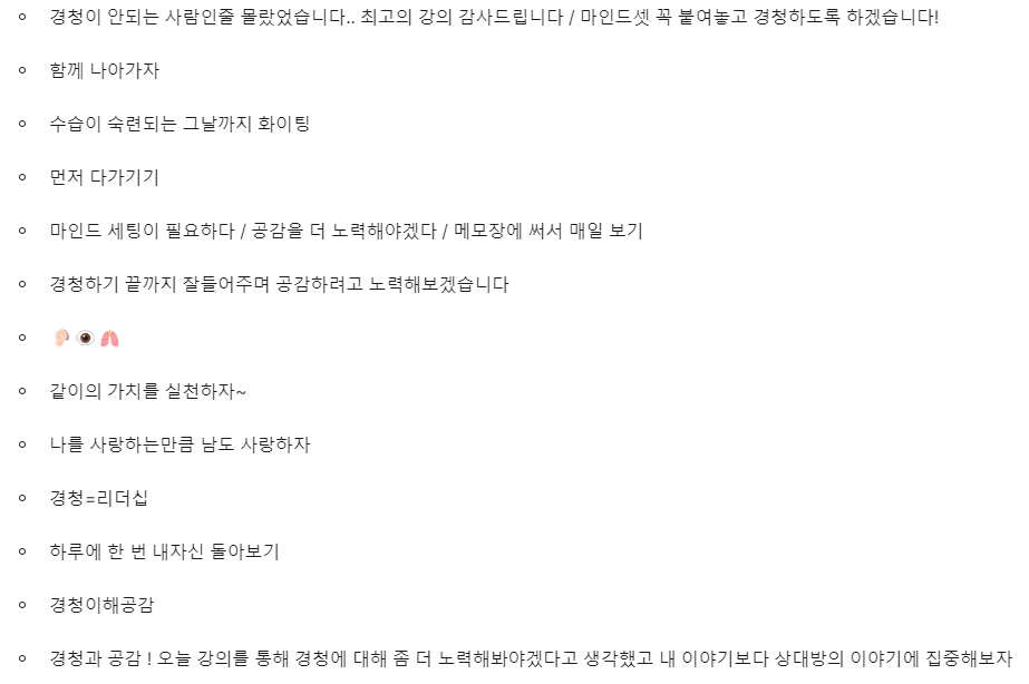 긍정적인 에너지와 자신을 돌아보는 리더의 힘을 느꼈다.