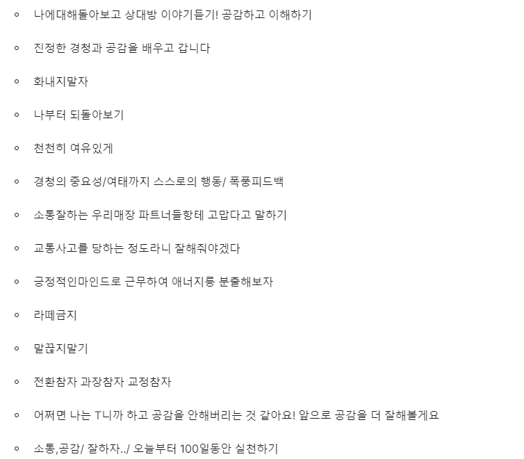 구성원들과 제대로 좋은 관계를 맺으며 소통해야 하는가에 대해서 고민하는 시간.