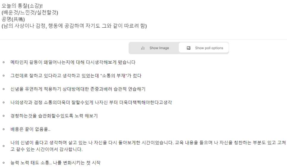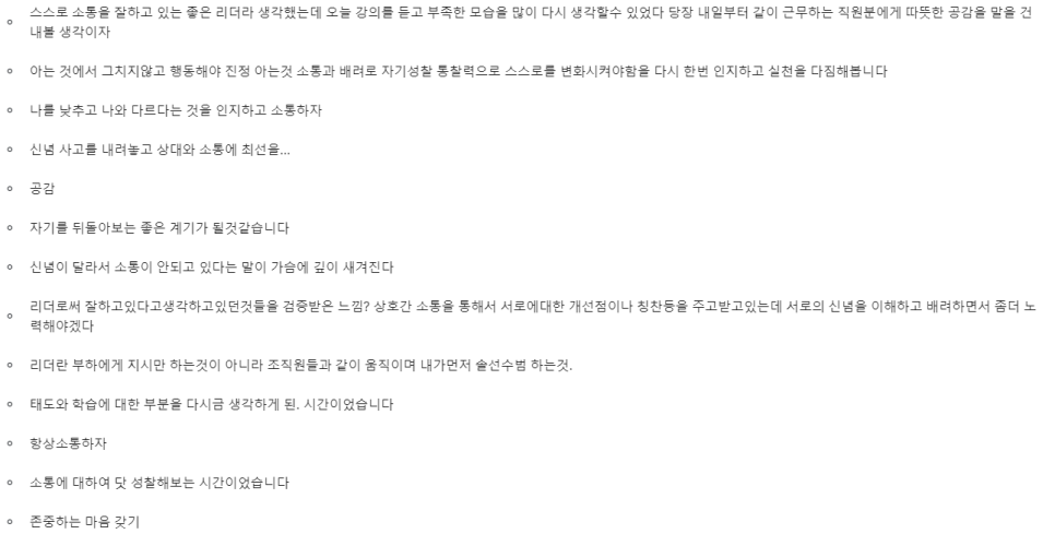 호응도 잘해주시고 본인의 실제 사례와 접목시켜 다양한 생각을 나눠주신