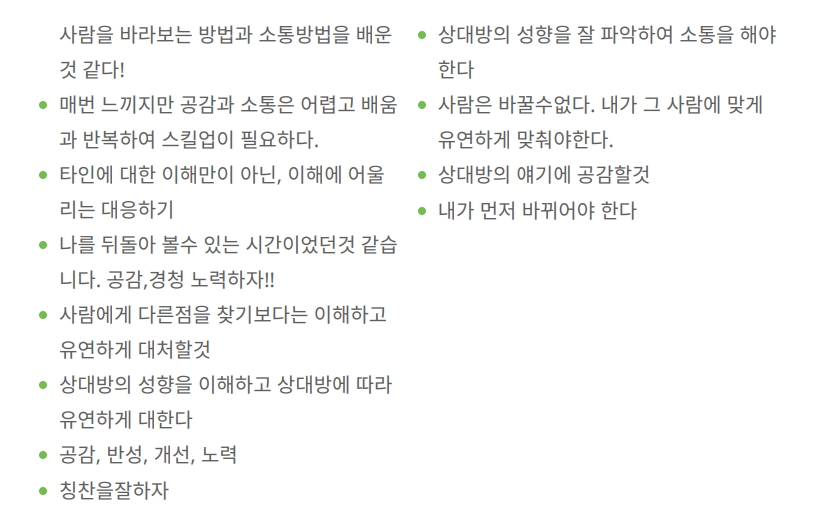 소통에 대한 모든것을 함께 하기에 전 직급 상관없이 도움이 되는 과정이다.