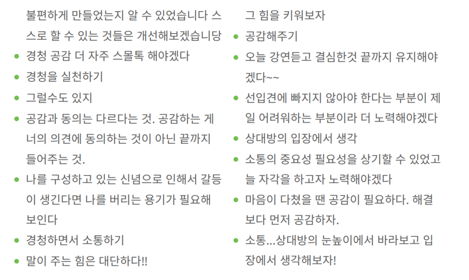 강의를 시작하며 우리는 소통의 본질에 대해 이야기를 나눴습니다. 소통이란 단순히 말을 주고받는 것이 아니라,
