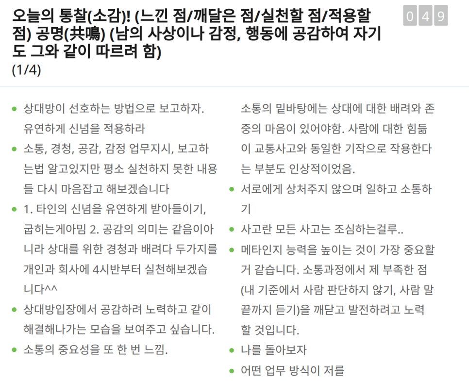 특히 한 신입사원의 소감이 인상 깊었습니다. "입사 후 처음 받는 교육인데, 회사에서 이렇게 소통을 중요하게 생각한다는 점이 놀라웠어요. 앞으로 적극적으로 의견을 내고 동료들과 소통하는 직원이 되겠습니다."