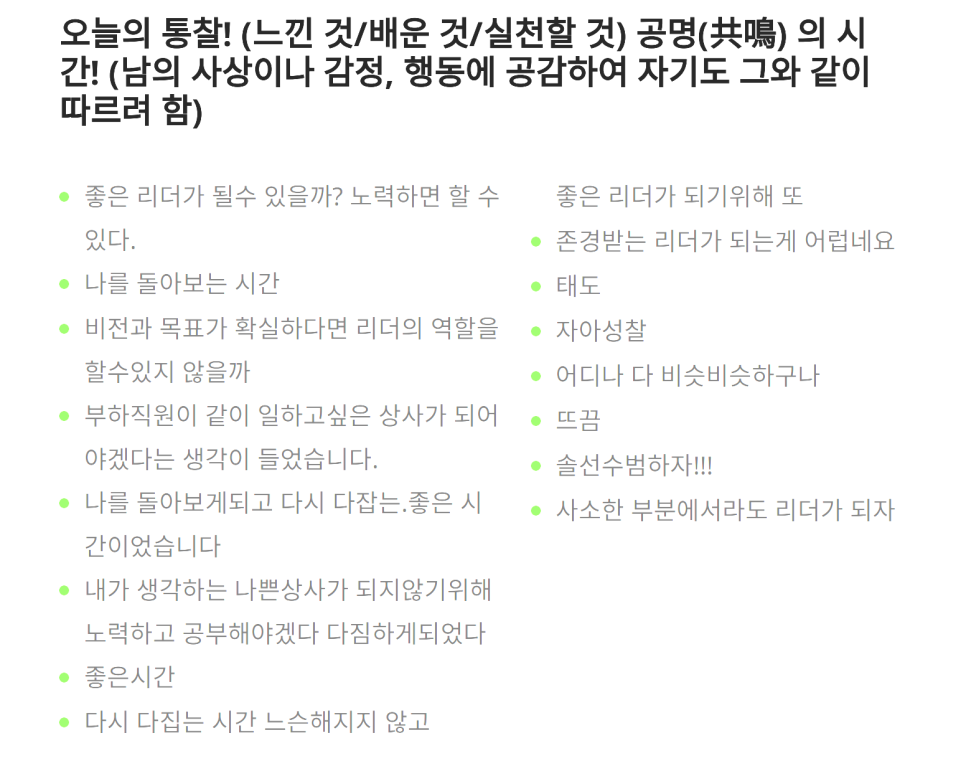 특히 인상 깊었던 건, 한 참가자께서 "이제야 진정한 리더의 역할이 무엇인지 깨달았습니다.