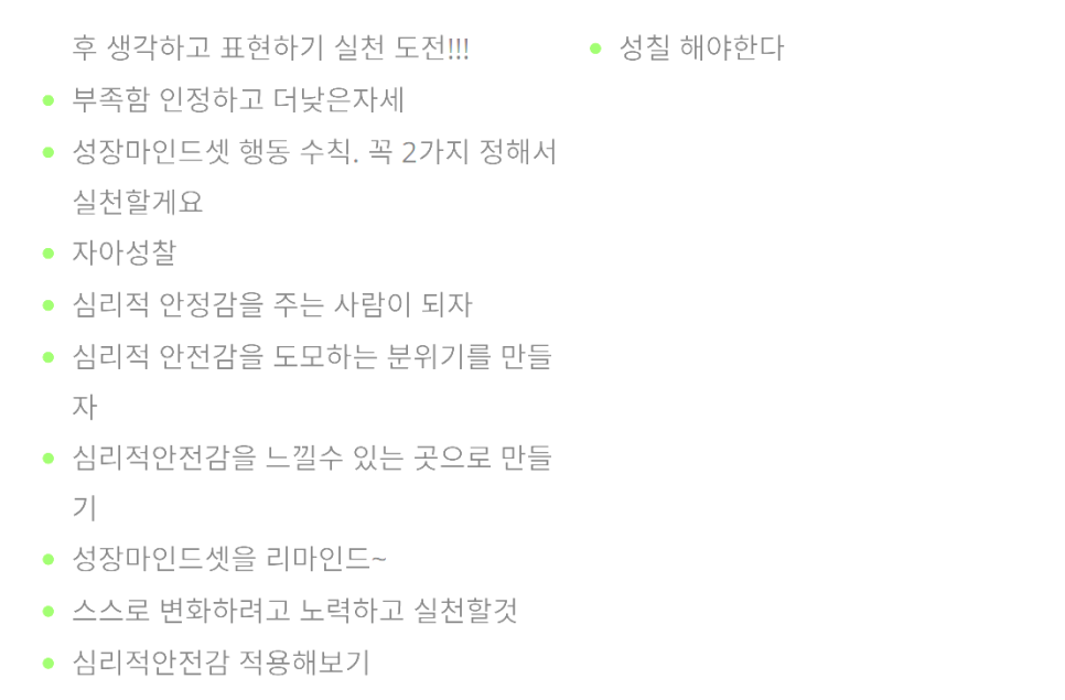 기여자 안전: 자신의 아이디어와 의견을 적극적으로 제시할 수 있는 단계