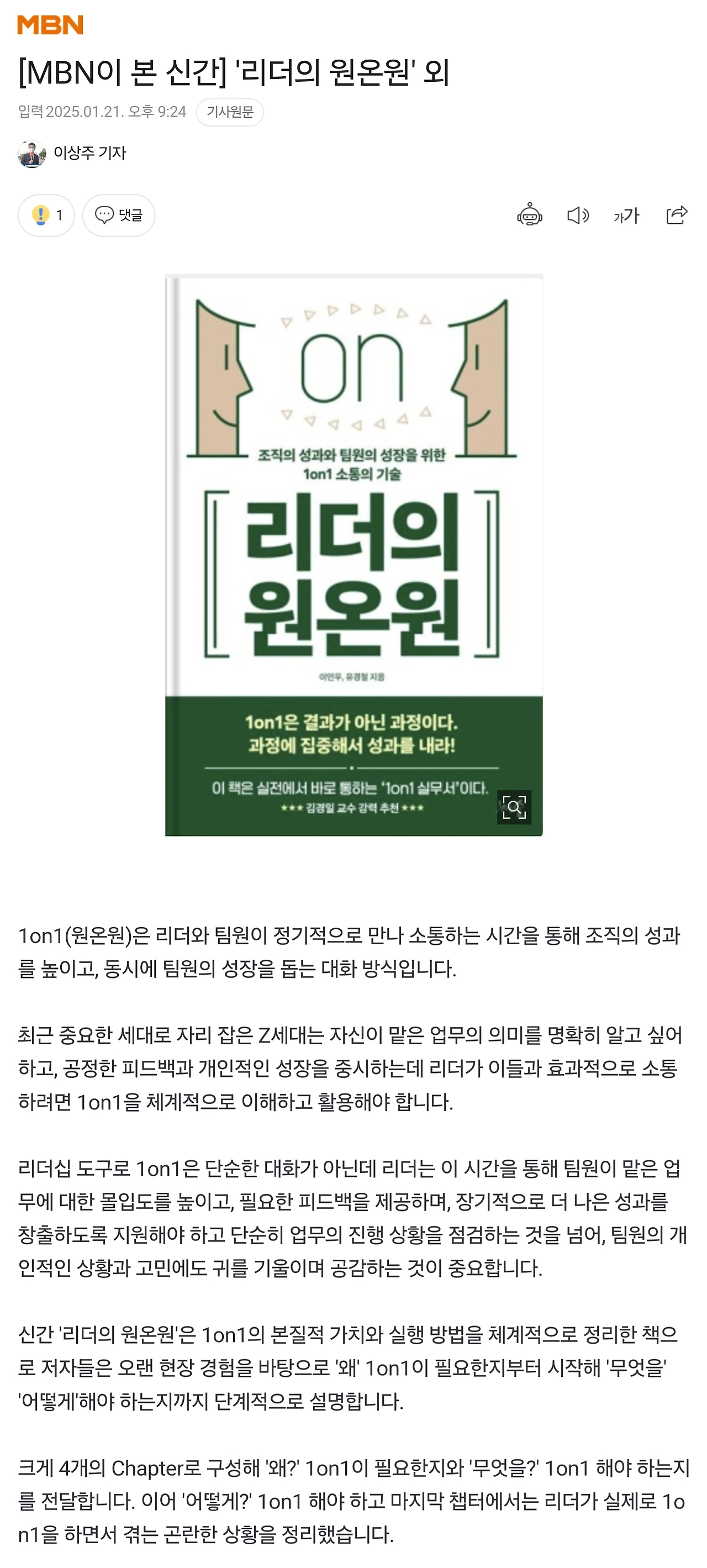 MBN에 소개된 신간 #리더의원온원 리더십 책 베스트셀러
